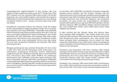 dan cara untuk memperkuat keterlibatan dan partisipasi OMS dalam warga desa. Berpartisipasi artinya tidak hanya sebatas menyampaikan