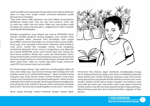 mandiri yang menerapkan prinsip-prinsip berkelanjutan. Akuet ternyata warga desa mantan yang beralih dari dari berkebun karet ke sawit secara